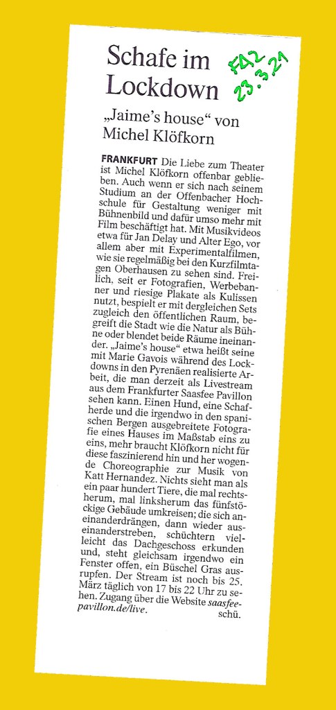 .. der Lockdown hat uns bei den Dreharbeiten in den spanischen Pyrenäen überrascht.Das ganze Land wurde von einem Tag auf den anderen unter Hausarrest gestellt.Wir versteckten uns in den Bergen.Wo hätten wir auch sonst hingehen sollen.Leben wir bereits in einer Collage und haben es nicht bemerkt?’